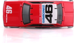 Hű piros–fehér–kék livéria szponzorlogókkal és a 46-os rajtszámmal, amely ikonikus versenykaraktert kölcsönöz a modellnek.