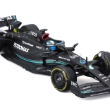 A modell fém (die‑cast) kivitelű finom műanyag kiegészítőkkel, slick abroncsokkal, látható aerodinamikai padlóelemekkel és gondosan kidolgozott pilótafülkével, benne versenyzővel. Ideális F1‑gyűjtőknek, a MERCEDES‑AMG PETRONAS csapat rajongóinak és a precíz autómodellek kedvelőinek.