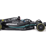 Ez a hivatalosan licencelt MERCEDES‑AMG PETRONAS F1 W14 (2023) modell a Bburagótól hűen ragadja meg a 2023-as szezon együlésesének formáit, színeit és részleteit, beleértve a 63-as rajtszámot George Russell számára. A fekete szín türkiz akcentusokkal, a pontos szponzornyomatok és az ikonikus elemek, mint a halo és a szárnyak, fokozzák a realisztikus megjelenést.