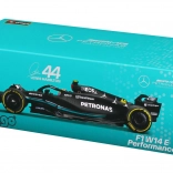 Élvezze az ikonikus W14 E Performance (2023) monopostót a MERCEDES‑AMG PETRONAS csapat kivitelében, 44-es rajtszámmal. Az 1:24 méretarányú modell hűen adja vissza a karosszéria, a szárnyak, a halo és a jellegzetes festés részleteit. Ideális vitrinekbe, íróasztalra, illetve ajándéknak motorsport-rajongóknak.