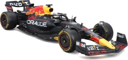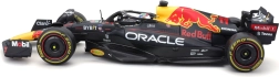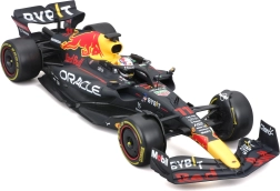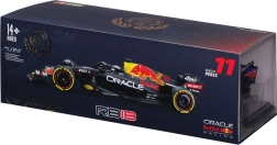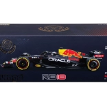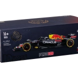 Gyűjtői fém F1 modell, az ORACLE RED BULL RACING RB18 1:24 méretarányban, amely minden rajongónak örömet szerez. Autentikus fényezést, részletes aerodinamikát, nyitott kokpitet a pilóta sisakjával és gumiból készült abroncsokat kínál, élethű megjelenéssel polcon és könnyed játék közben is.
