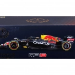A Oracle Red Bull Racing RB18 (2022) autó részletgazdag gyűjtői modellje 1:24 méretarányban örömet okoz az F1 rajongóinak és a gyűjtőknek. Precíz szponzormatricákat, aerodinamikai elemeket, szabadon forgó kerekeket és a pilótát védő halo elemmel ellátott kokpitet kínál. Ideális kiállításhoz és könnyed játékhoz is, a világbajnok Max Verstappen autójának élethű kivitelével.