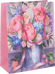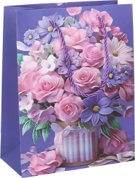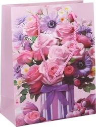 Stílusos, S méretű ajándéktáska, 18x23x8,5 cm méretű, ideális apró ajándékokhoz és meglepetésekhez. Négy különböző mintában elérhető, így választhat az ön preferenciái szerint.