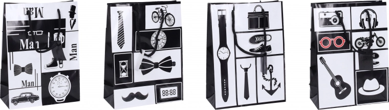 Szép ajándék táska kicsi méretben 17,5x24x8 cm, ideális minden ajándékhoz, amelyet elegánsan szeretne átadni. A táska négy különböző kivitelben érhető el univerzális használatra az egész évben.