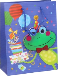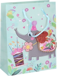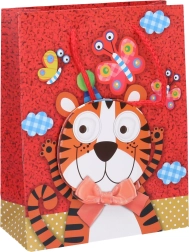 Ez a gyerek ajándéktáska remek választás, ha gyorsan és szépen szeretnél kisebb ajándékot csomagolni vágás és ragasztás nélkül. A 23 × 18 × 8 cm-es méretnek köszönhetően alkalmas könyvekhez, apró játékokhoz vagy kozmetikai csomagokhoz. A vidám állatminták mosolyt csalnak az arcokra, és játékos megjelenést adnak az ajándéknak.