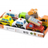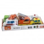 Négy mentő- és városi jármű + munkagépek egy csomagban a tematikus játék és a mindennapi történetek támogatására.