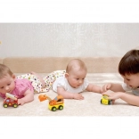 Az autók könnyűek, remekül gurulnak, és méretük tökéletesen illik a gyermekkezekhez. A különböző járműtípusoknak köszönhetően a gyerekek könnyen megismerik a körülöttük lévő világot, és fejlesztik szociális valamint motoros készségeiket.
