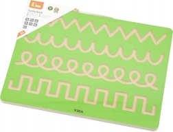 A VIGA fa grafomotorikus tábla segít a gyerekeknek gyakorolni a finommotorikát, a helyes kézvezetést és a felkészülést az írásra. A bevájt, ívelt vájatoknak köszönhetően a gyermek biztonságosan követi a vonalakat, fejleszti az izommemóriát és javítja a kéz–szem koordinációt.
