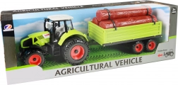 Fedezd fel a farmos játék örömét a részletgazdag traktorral és fahordó pótkocsival, összesen kb. 45 cm hosszban. A traktor lendkerekes a sima mozgásért, a pótkocsi szabadonfutós, és könnyen lecsatlakoztatható. A rönkök egyszerűen levehetők, ami fejleszti a finommotorikát és a képzelőerőt.