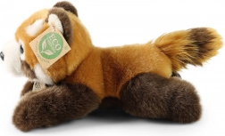 Aranyos piros kis panda plüss fekvő pozícióban, 20 cm-es méretben, amely örömet szerez gyerekeknek és gyűjtőknek egyaránt. Kézzel varrt, prémium minőségű, puha plüssből készült, és élethű hatást kelt. Újrahasznosított PET palackokból készült, környezetbarát töltetének köszönhetően kíméletes a természethez, és a legkisebbek számára is biztonságos.