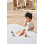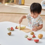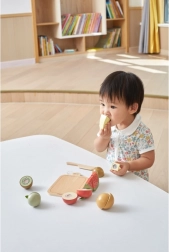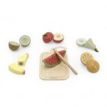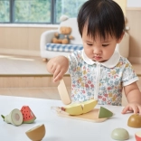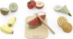Ezzel a fa gyümölcskészlettel a gyerekek órákon át szórakozhatnak és közben tanulhatnak is. A fa késsel biztonságosan vághatják és kombinálhatják a gyümölcsöket a saját fantáziájuk szerint.