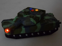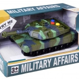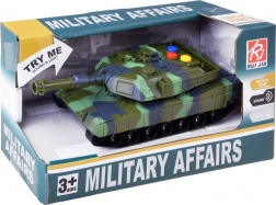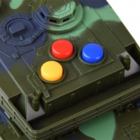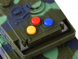 A katonai tank minőségi műanyagból készült, amely valósághű megjelenést és tartósságot biztosít. A tank három színes gombbal van felszerelve, amelyek valósághű hangokat szimulálnak, mint például a haladás, a felkészülés és a lövés, illetve a sziréna. Minden gombnyomásnál átélhető a csatatéri akció hiteles hangulata.