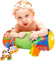A hengert lehet használni stabilizátorként is az autósülésben, babakocsiban vagy otthon. Vidám színei és mintái felkeltik a gyermek figyelmét, és stimulálják látási, hallási és tapintási érzékeit. A henger méretei 42 x 16 x 16 cm, és könnyen karbantartható anyagokból készült.< /p>