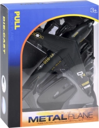 A repülőgép modell fekete színű, arany és ezüst részletekkel, amelyek valódiságot és stílust kölcsönöznek neki.