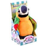 Ez a színes plüsspapagáj a játék minden pillanatának sztárja lesz. Bekapcsolás után figyeli a környező hangokat, majd viccesen és jól érthetően megismétli azokat. Remek választás spontán szórakozáshoz, a beszédkészség fejlesztéséhez és közös családi élményekhez.