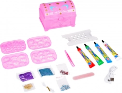 Szeretnél saját egyedi ékszereket készíteni? Ez a kreatív készlet ideális a lányok számára, akik szívesen készítenek saját dizájnt. Tartalmaz egy rózsaszín ékszerdoboz tetszetős dizájnnal, amely egyedi megjelenést kölcsönöz ékszereidnek.