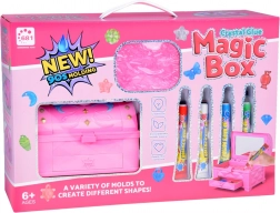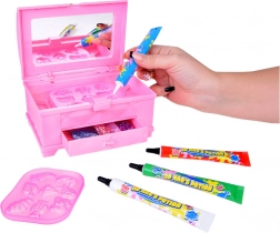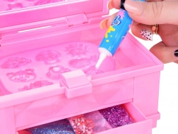 Ékszerek készítése szórakoztató folyamat: egyszerűen válaszd ki a formát, öntsd bele a kristálygélt, adj hozzá csillámot vagy díszeket, zárd le a koffert, és 90 másodperc múlva az ékszerkészítményed készen áll! A csomagban különböző formák és dekorációk találhatók a korlátlan alkotáshoz.
