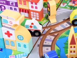 - Városi blokkok: Különféle fa blokkok, amelyek különböző konfigurációkban köthetők össze és építhetők fel.
