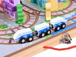 Fából és pasztell színekből készült, ez a játék tartós szórakozást biztosít és nagyszerű ajándék a kisvonatok és a kreatív játékok szerelmeseinek.