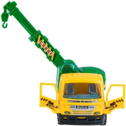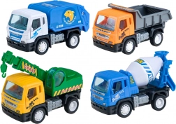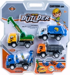 A készlet tartalmaz egy darut, billenőplatós teherautót, szemetest és betonkeverőt, mindegyik egyedi részletekkel, amelyek ösztönzik a kreatív és interaktív játékot.
