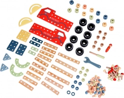 Az építőkészlet lehetőséget nyújt a gyerekeknek megtanulni a szerszámok funkcióit és a felnőttek tevékenységeinek utánzását, mint például a famegmunkálást. A csavarok és anyák használata segíti a kéz izmainak erősítését és javítja a szem-kéz koordinációt. Sokoldalúságának köszönhetően ez a készlet ideális otthoni és kültéri használatra, és remek módja a családi időtöltésnek.