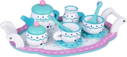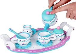 A fa teáskészlet segíti a gyerekeket abban, hogy szerepjátékot játszanak, így fejleszti kreativitásukat és szociális készségeiket.