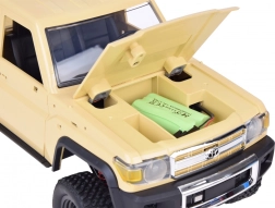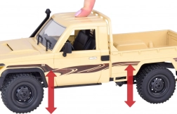 - Realista dizájn: Részletgazdag karosszéria-kidolgozás, nyitható első motorháztető, hátsó plató, terepmintás gumigumi abroncsok és a Toyota Land Cruiser jellegzetes részletei.