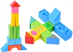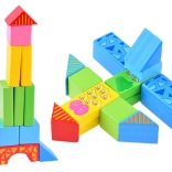 A kockák kiváló minőségű fából készültek, vonzó színekkel és grafikákkal borítva, ami garantálja a hosszú távú tartósságot és játék örömét.