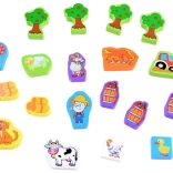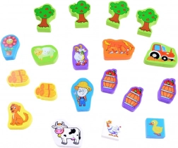 A színes fa kockáink Farm ideális játék gyerekeknek 3 éves kortól. A 100 különféle elemmel a gyerekek különböző struktúrákat építhetnek, az épületektől a farmokig, ami támogatja kreativitásukat és fantáziájuk fejlődését.