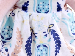 Ez a baba teljesen puha, érintésre kellemes anyagból készült. Pliszírozott, virágmintás ruhával rendelkezik, amely színben harmonizál a cipőkkel, gallérral és kalappal. Hajai göndör és szőkék. A szemek, szemöldök, mosoly és orr hímzettek, így nem tartalmaznak apró részeket, amelyek játék közben leesnének.