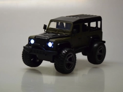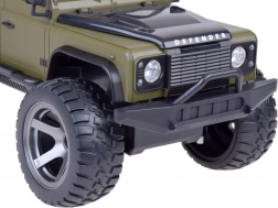 Ez a modell hűen idézi a legendás Defender 110 terepjárót, és készen áll a beltéri és kültéri játékra. A minőségi műanyag karosszéria, a durva mintázatú, lágy gumiabroncsok és a hátsó tengely felfüggesztése segítenek simábban áthaladni az egyenetlenségeken. Az első LED lámpák menet közben felkapcsolnak, fokozva a valósághű élményt.