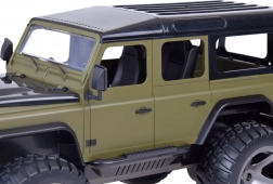 Részletgazdagon kidolgozott karosszéria a LAND ROVER Defender 110 mintájára, nagy hasmagasság és nagy, lágy gumiabroncsok durva mintázattal – az egyenetlen felület sem jelent gondot.