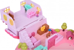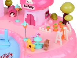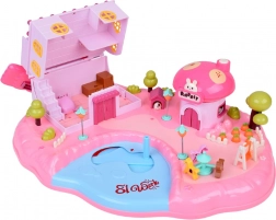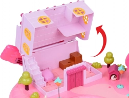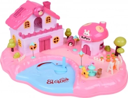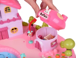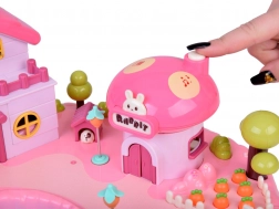 A házikó többszintes belsőt kínál mindennapi játékhoz: otthonos hálószoba ággyal, nyitható szekrény, fürdőszoba káddal és mosdóval, konyhácska hűtővel és fésülködőasztal. A fény- és hangeffektek gombokkal indíthatók, fokozzák a játék hangulatát, a megvilágított RABBIT felirat pedig a dallam ritmusára reagál.