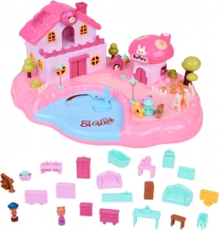 Fedezd fel a varázslatos kertiházat: a nyitott házikó légykalap alakú bolttal, tóval vezérlővel és játszótérrel végtelen történetmesélésre hív. A rejtett mágneses indukció mozgásba hozza a figurákat és a jelenet részleteit – csak húzd a vezérlőt a tavon, és engedd, hogy a kertbe, a játszótérre vagy a boltba induljanak.