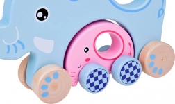 Ez a finom pasztell színekben pompázó fa húzogatós elefánt minden olyan gyermeket elbűvöl, aki épp felfedezi a járás világát. A nagyobb kék elefánt a testébe illesztve viszi a kisebb rózsaszín bébit, amely mozgás közben hűségesen „utazik” a mamája mellett. A játék simára csiszolt, kellemes tapintású, így tökéletes a kis felfedezőknek.