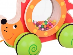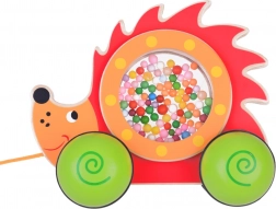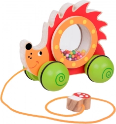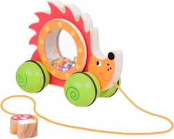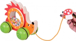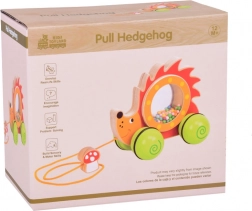 A fa húzható sün támogatja a gyermekek természetes fejlődését – az első lépésektől a finom- és nagy-mozgások fejlesztéséig. Menet közben az átlátszó kamrában színes golyók forognak, amelyek vizuális és hanghatást keltenek, fenntartva a gyerekek figyelmét.