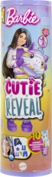 Fedezd fel a meglepetések világát a BARBIE Cutie Reveal babával szivárványos zebra jelmezben. A puha plüss álarc levétele után egy stílusos baba tárul fel vidám kiegészítőkkel, kétoldalas divatos dzsekivel és vízre reagáló, változó megjelenéssel. A csomag része egy aranyos mini állatka és egy fésű-szivacs a varázslatos színfelfedéshez.