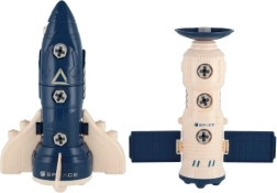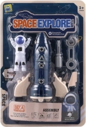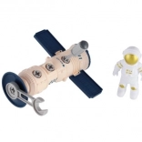 Teljes csavarozható készlet rakétával, űrmodullal és űrhajós figurával, amely támogatja a kreatív játékot és a tanulást játékos formában.
