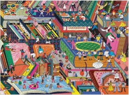 Vibráló jelenet minivilágokkal, könyvmotívumokkal és városi élettel – rengeteg apró történet, amely újra és újra szórakoztat.