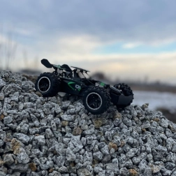 Készülj fel a korlátlan szórakozásra ezzel a nagy sebességű versenyautóval, amelyet strapabíró konstrukcióval láttak el a dinamikus vezetéshez, és a nehezebb terepeken is helytáll. Az autó simább és stabilabb haladást biztosít a lengéscsillapítóknak és a nagy gumikkal szerelt kerekeknek köszönhetően, így ideális fűre, murvára, aszfaltra vagy akár könnyű homokos felületekre.