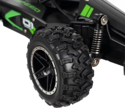 Az autó erős szerkezettel, nagy gumikkal és lengéscsillapítókkal készül, így könnyedén megbirkózik a különböző felületekkel és ellenáll az ütéseknek.