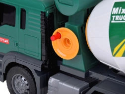 Ez a zöld betonkeverő ideális a kis építőjármű rajongók számára. Hanghatásokkal és mozgatható részekkel rendelkezik, amelyek minden játékot valósághűbbé tesznek. A gyerekek forgathatják a betonkeverő dobját, utánozva a beton keverését, és a funkcionális csatornával „önthetik” a keveréket.