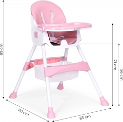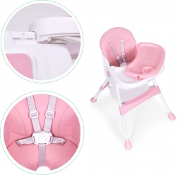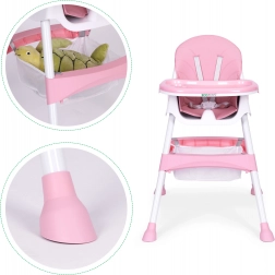 Etetőszék tálcával és kosárral, 5 pontos öv, ECOTOYS – Rózsaszín