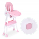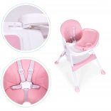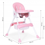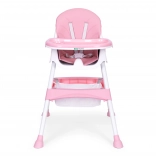 A széles tálca három pozíciója könnyen a gyermek növekedéséhez igazítható. A megemelt peremű felső rész pohártartóval levehető és mosogatógépben mosható, az alsó rész játékhoz és rajzoláshoz használható.