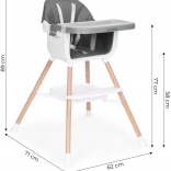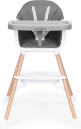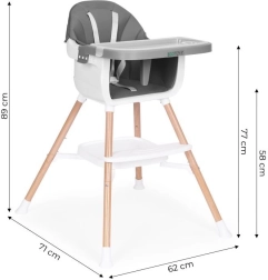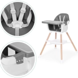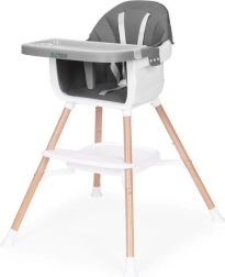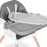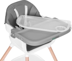 Ez a modern etetőszék megkönnyíti a közös étkezéseket – a gyermek az asztalnál ülhet, megfigyelhet, utánozhat és elsajátíthatja a helyes szokásokat. A széles tálca nemcsak evésre, hanem játékra, rajzolásra vagy építőkockázásra is alkalmas, így gyorsan a gyerekszoba kedvenc bútordarabjává válik.