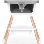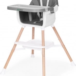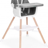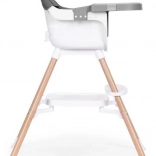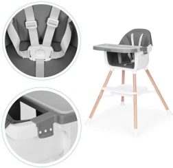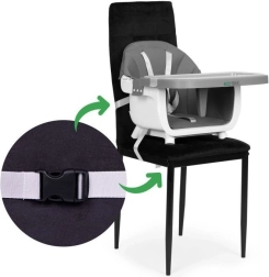 A 2 az 1-ben megoldásnak köszönhetően a lábak levehetők, az ülés pedig a mellékelt pántokkal biztonságosan rögzíthető egy hagyományos székre – ideális utazáshoz és az étkezőasztalhoz is.