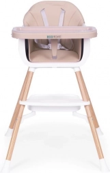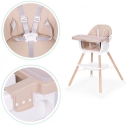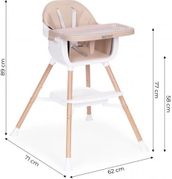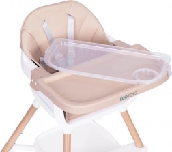 Üdv az asztalnál! Ez az etetőszék megkönnyíti a közös étkezést az első hozzátáplálástól kezdve. A széles tálca helyet ad a étkezéshez, játékhoz és alkotáshoz, míg a puha, tartós kárpit könnyen tisztítható ökobőrből kényelmet és egyszerű ápolást biztosít. Modern megjelenése bármely enteriőrbe illik.