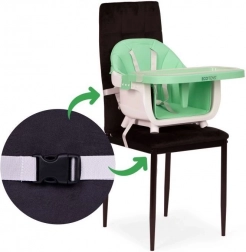 Az ülőkét könnyedén leveheti, és pántokkal rögzítheti egy hagyományos székhez. Otthonra, látogatásokhoz és nyaraláshoz is ideális – a gyermeknek mindig biztonságos helye lesz az asztalnál.