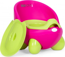 A bili nemcsak csúszásgátló lábai révén biztosít stabilitást, hanem ergonomikus háttámlával is büszkélkedhet, amely maximális kényelmet biztosít, és támogatja a helyes testtartást a gyermeknek használat közben. A fedél praktikus, ha a bilit nem használják.
