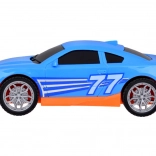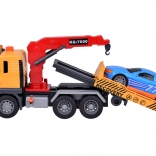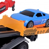 A készlet része egy kék sportautó is, amely tökéletesen illeszkedik az autómentőre. A teljes játék valósághű színekből áll - sárga, szürke, piros és kék.